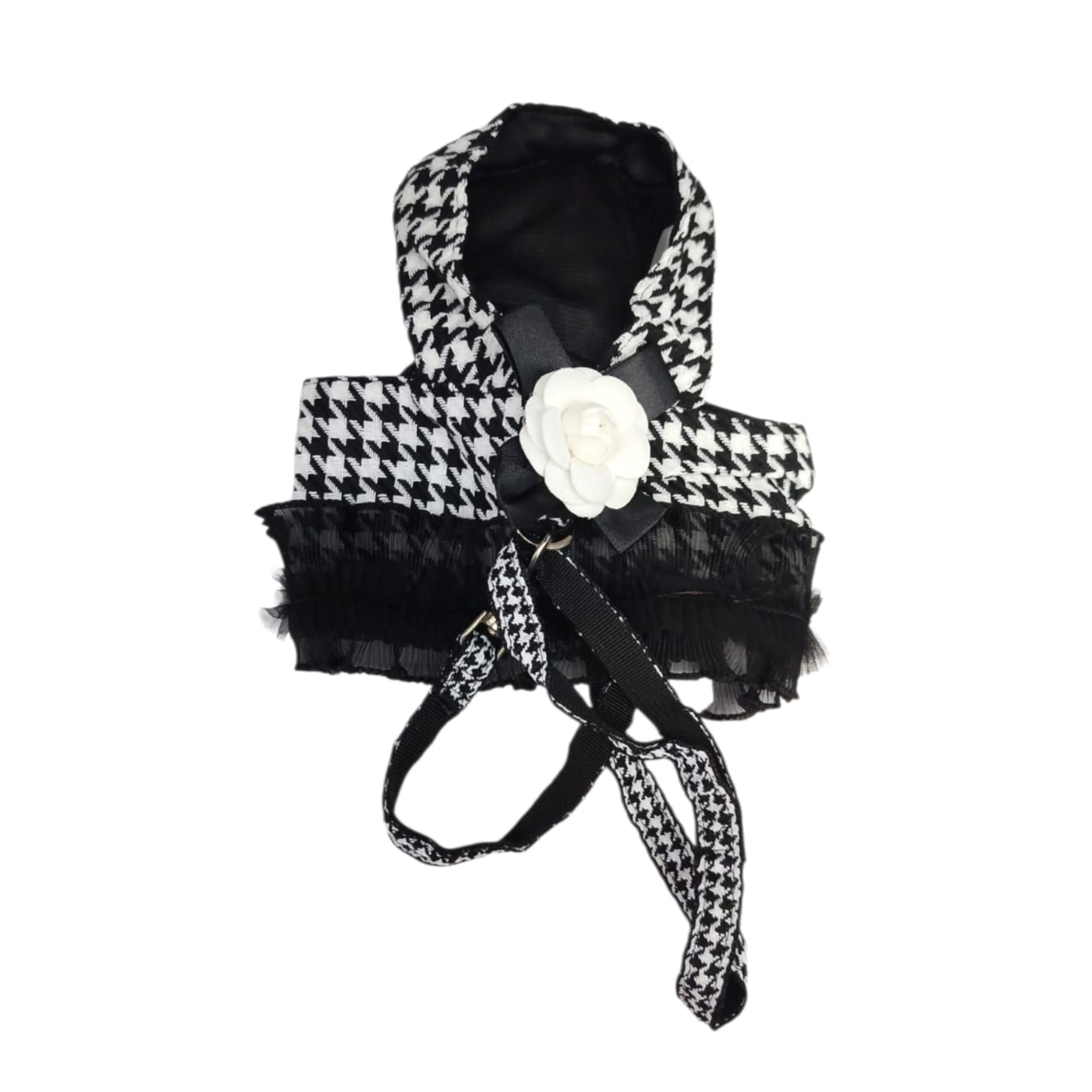 : Elevate your pet’s style with this Chanel-inspired black and white dress—crafted for medium-sized dogs or cats who love luxury. Featuring a timeless color palette, refined silhouette, and soft, breathable fabric, it’s perfect for special occasions, photoshoots, or upscale outings. Easy to wear with secure closures, this dress blends fashion and comfort effortlessly.