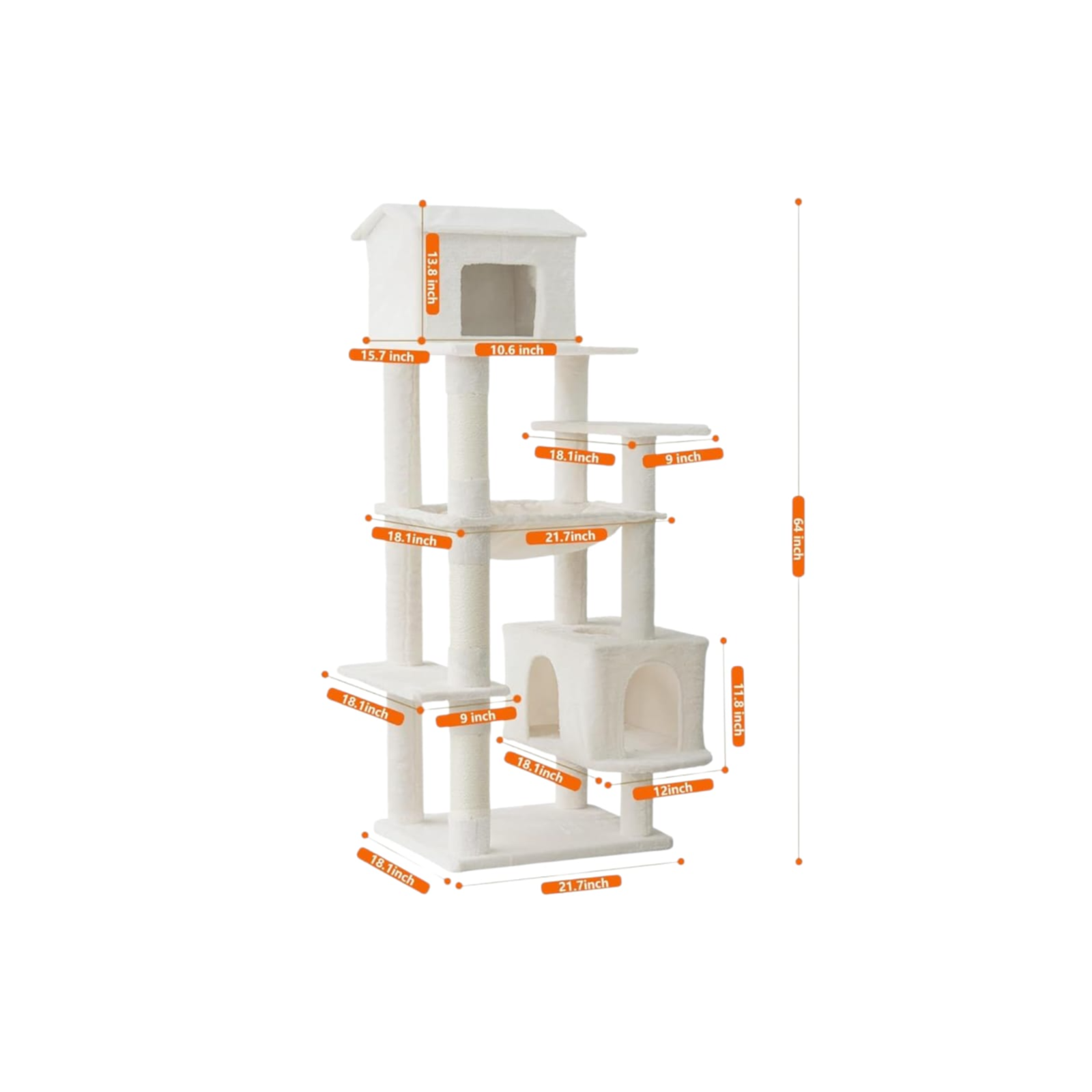 Elegant cat tree in beige color, featuring a practical and stylish multi-level design that provides your cat with the perfect space for playing, climbing, relaxing, and hiding. Height: 160 cm,57cm x29cmx47cm, Weight :16.8kg