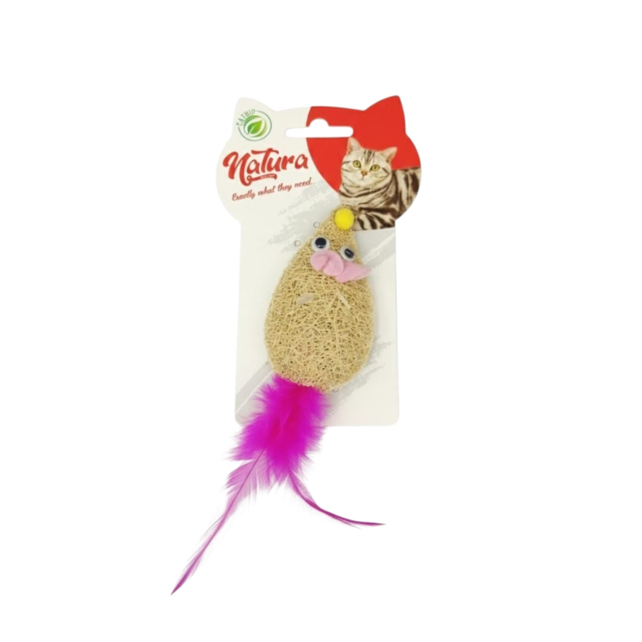 The Natura Sponge Mouse Toy is a delightful cat toy featuring a unique textured sponge body with playful decorative elements. The mouse-shaped design combines a natural-colored sponge material with bright pink feathers and cute facial details to create an engaging toy that appeals to cats’ hunting instincts.