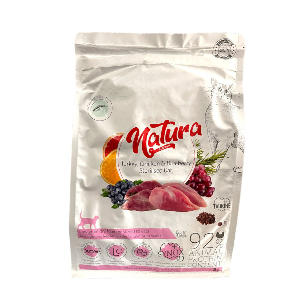 Natura Chicken Turkey & Blueberry Sterilised Cat Dry Food 2kg
