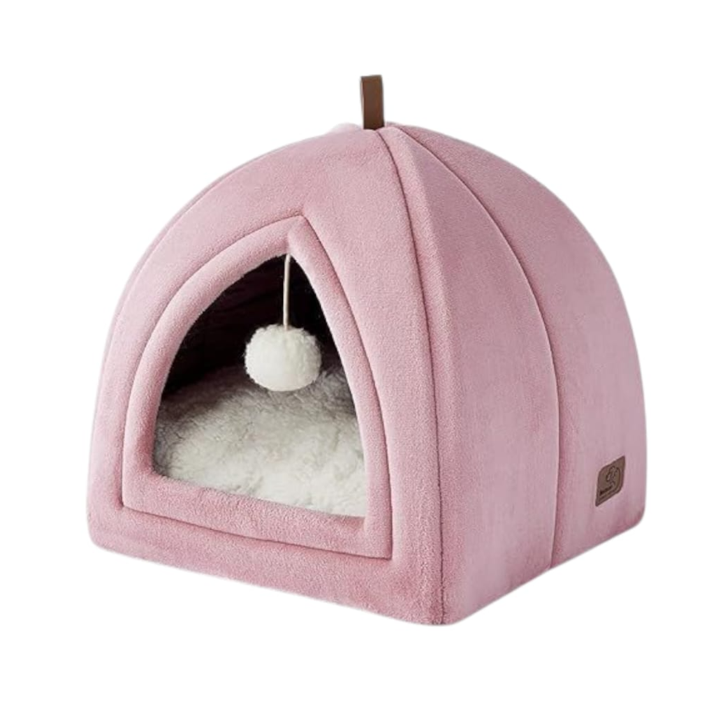 2-in-1 Indoor Cat Bed in Pink combines comfort and versatility with a foldable tent-style design. Measuring 48 cm high by 40 cm wide and long, it features a soft, washable cushion and a non-slip base for stability. Ideal for cozy naps and stylish indoor lounging.