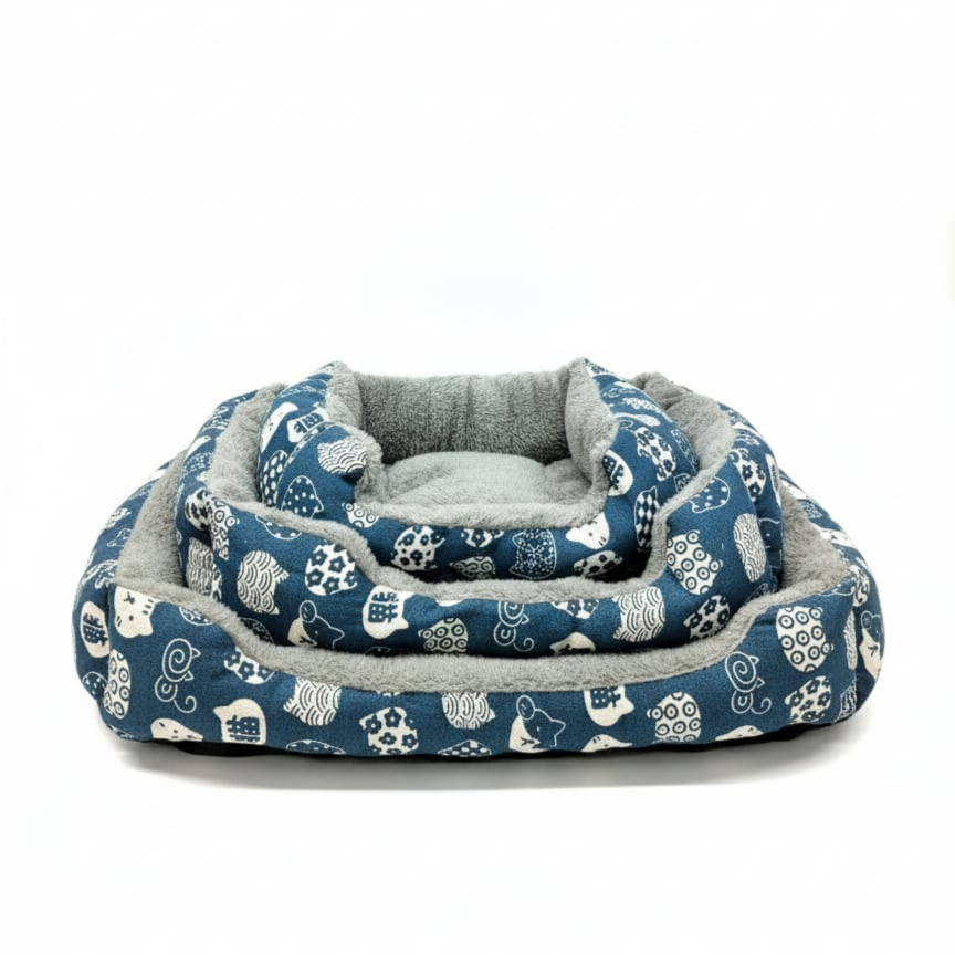 An elegant blue pet bed set that blends luxury and comfort in one stylish design. Available in three sizes—small, medium, and big—to perfectly suit your pet’s needs.