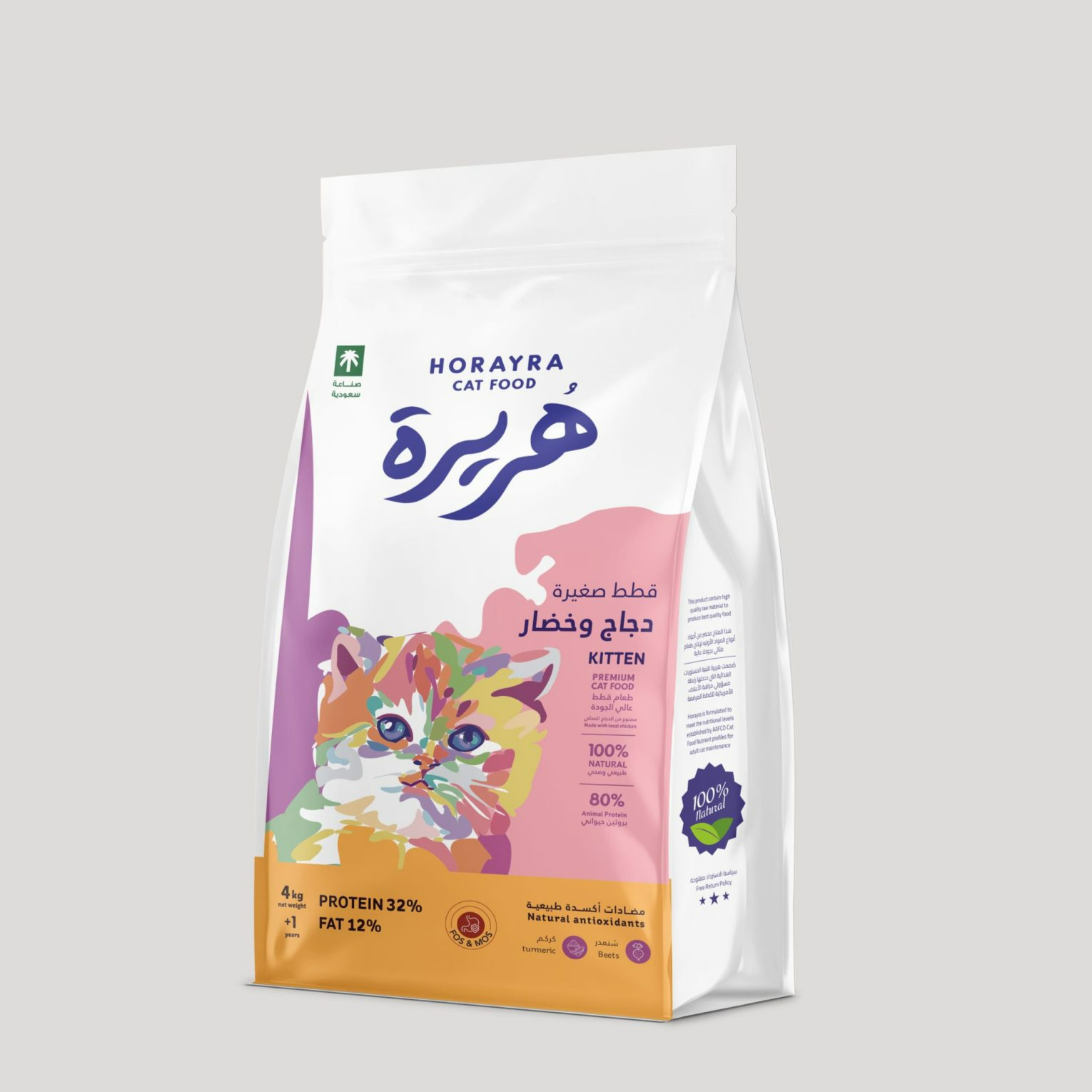 Horayra Kitten Chicken & Vegetable is a premium dry cat food specially formulated for kittens. This 4kg package contains a balanced blend of chicken and vegetables, with 32% protein and 12% fat content, designed to support healthy growth and development in young cats.