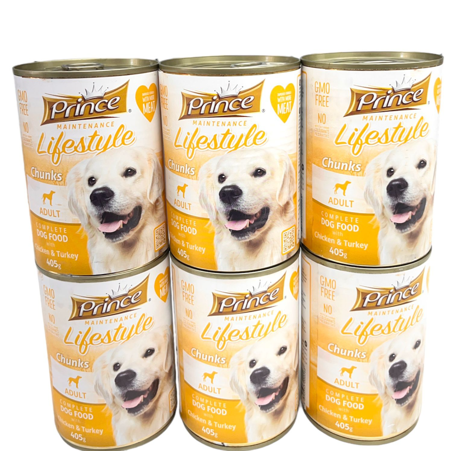 Prince Lifestyle Chunks is a premium wet dog food featuring a nutritious blend of chicken and turkey in 405g cans. This pack of 6 cans offers complete and balanced nutrition for adult dogs, with real meat chunks in a palatable formula that’s GMO-free.