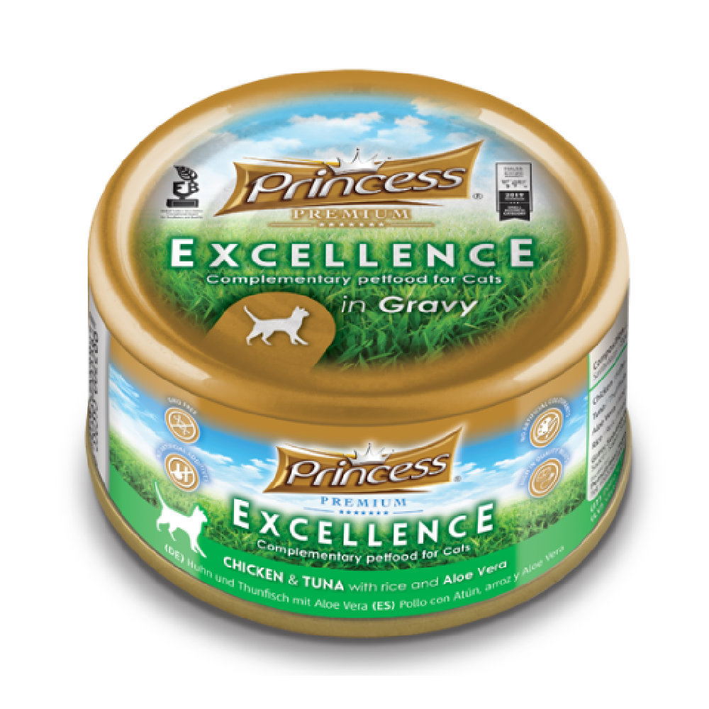 Princess Excellence Cat Wet Food – Chicken & Tuna with Rice & Aloe Vera, 70g A nourishing blend of tender chicken and tuna, complemented by rice and soothing aloe vera. Formulated to support digestion, hydration, and overall feline wellness with natural ingredients and balanced nutrition. Ideal for both Kitten and Adult cats seeking gentle, flavorful meals.https://www.delmoosh.com/?post_type=product&product_cat=&s=cat+wet+food