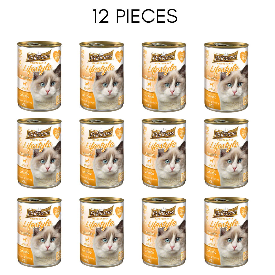 Princess Life Style Chunks Chicken and Turkey 405g – 12 Pcs offers a bulk pack of hearty wet food featuring tender chicken and turkey chunks in savory gravy. Formulated for adult cats, this complete and balanced recipe delivers high-quality protein and essential nutrients to support daily health and vitality. Ideal for multi-cat households or stocking up.https://www.delmoosh.com/?post_type=product&product_cat=&s=cat+wet+food