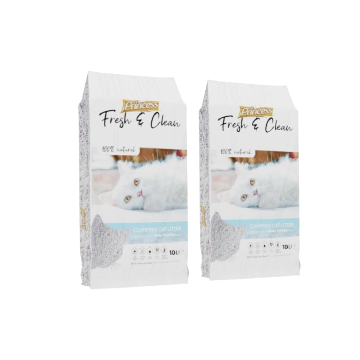 Princess 2-piece high-quality cat litter set (10L each) with gentle baby powder scent. Dust-free formula for a cleaner, fresher litter box experience.https://www.delmoosh.com/?post_type=product&product_cat=&s=cat+litter