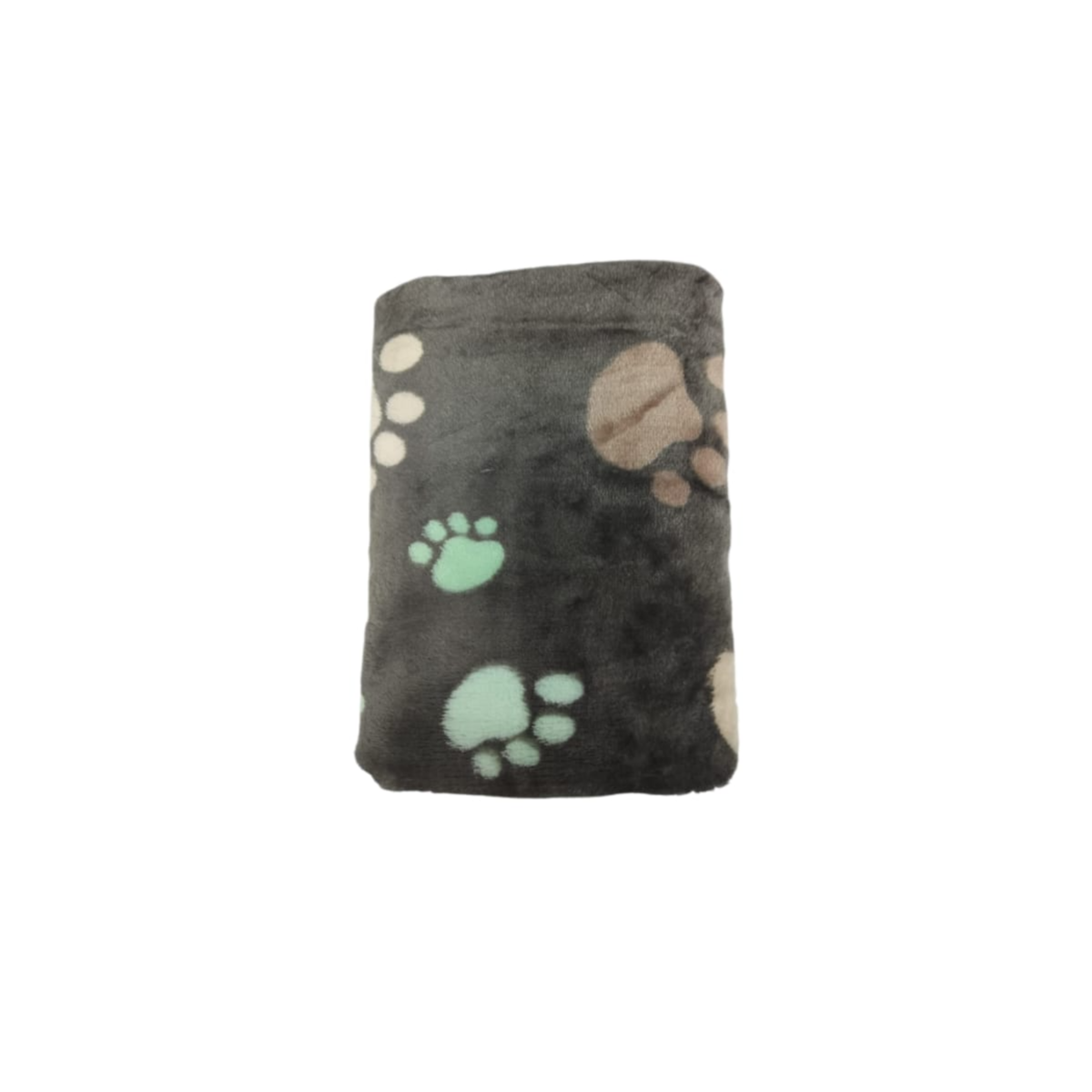 A cozy pet blanket featuring a soft fleece material with adorable paw print patterns, measuring 76 cm x 55 cm. Perfect for providing warmth and comfort to pets while protecting furniture and car seats, this versatile blanket comes in various color options.